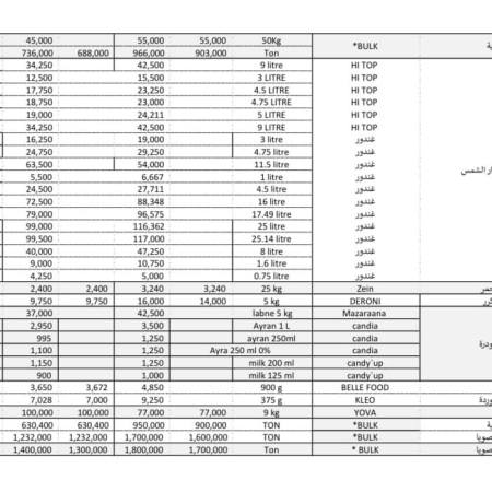 العلامات التجارية للسلع المدعومة وأسعارها قبل وبعد الدعم